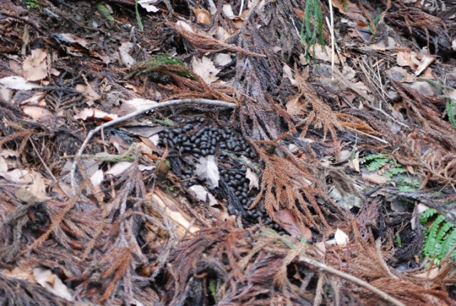 ホンドテンの糞。沢の周囲の石の上や林道のど真ん中にホンドテンの糞がよく落ちてます。