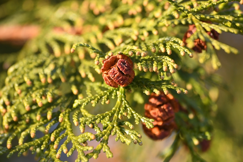 球果は直径1cm、開花した年の10~11月に熟し、赤褐色になります。