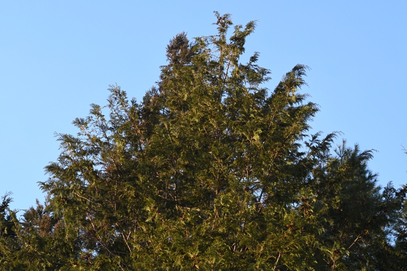図鑑によると、サワラに比べて樹冠は密で先端が丸くなります。写真を見比べると確かにそんな気がします。