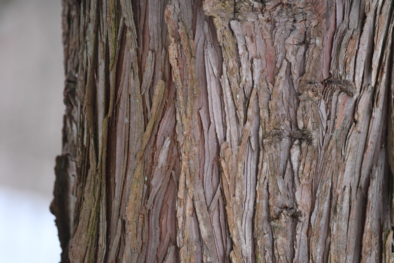 樹皮は、少し灰色の強い赤茶色でスギに似ています。
