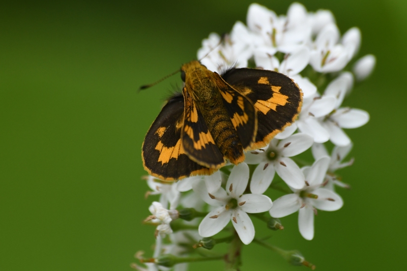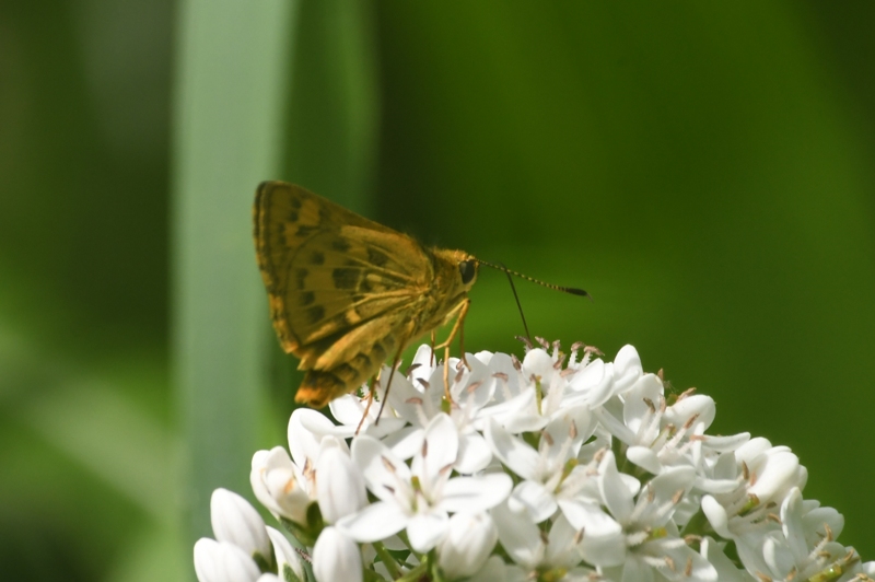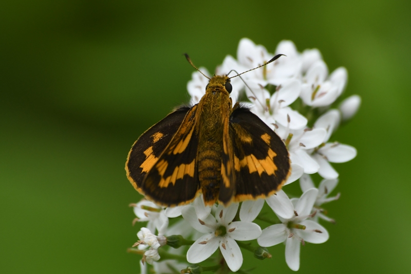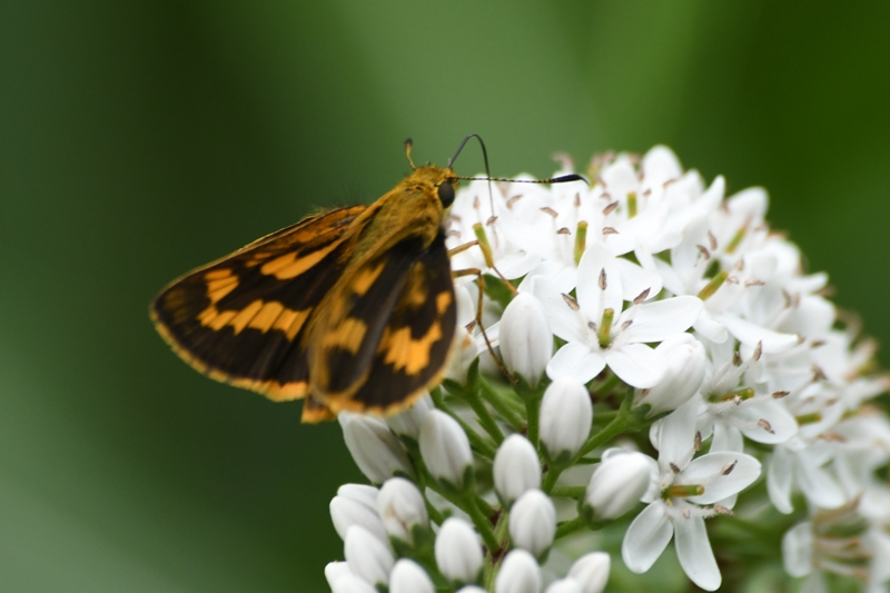 そんな中に褐色の地に山吹色の帯が目立つきれいなキマダラセセリがいました。