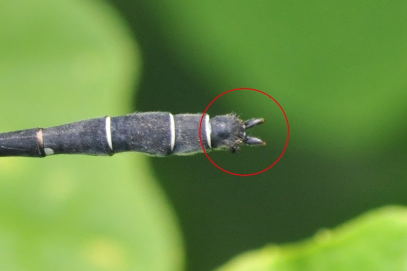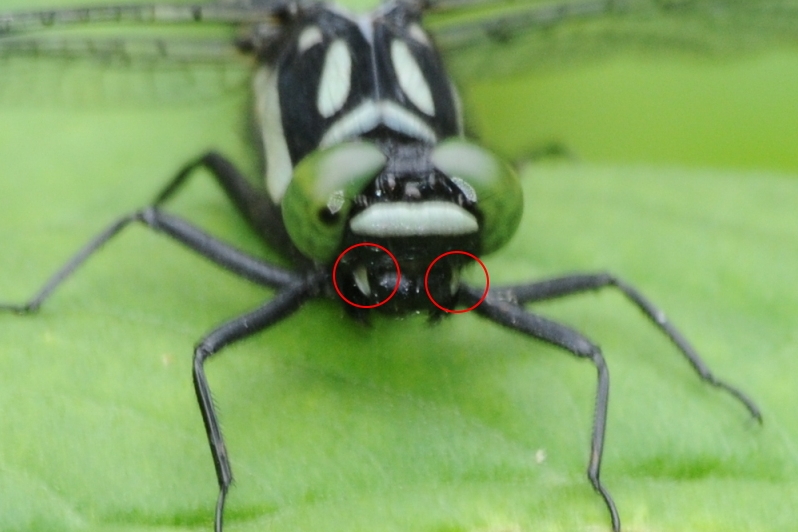 ダビドサナエの雄の特徴として、図鑑には必ず「腹部第10節の側面が張り出す」と記載されています。 撮り溜めたダビドサナエのオスの写真を探したけど、ちょうどいいものが見つからず。上の写真は、張り出した部分が摩耗したみたいで、 分かりづらくなっていますね。類似種のモイワサナエでは?と思う方もいらっしゃるかもしれませんが、胸の模様が明らかにダビドサナエでした。